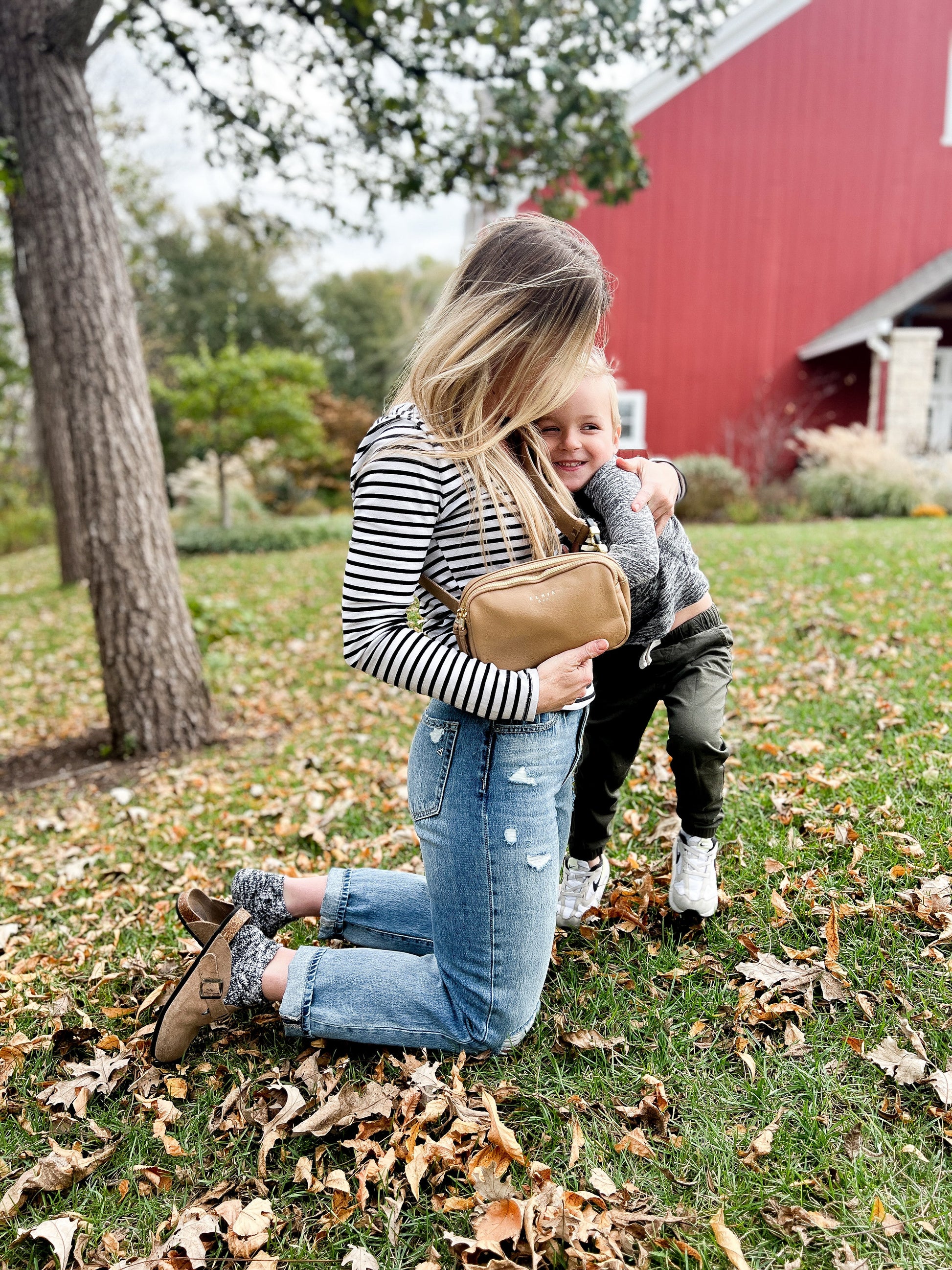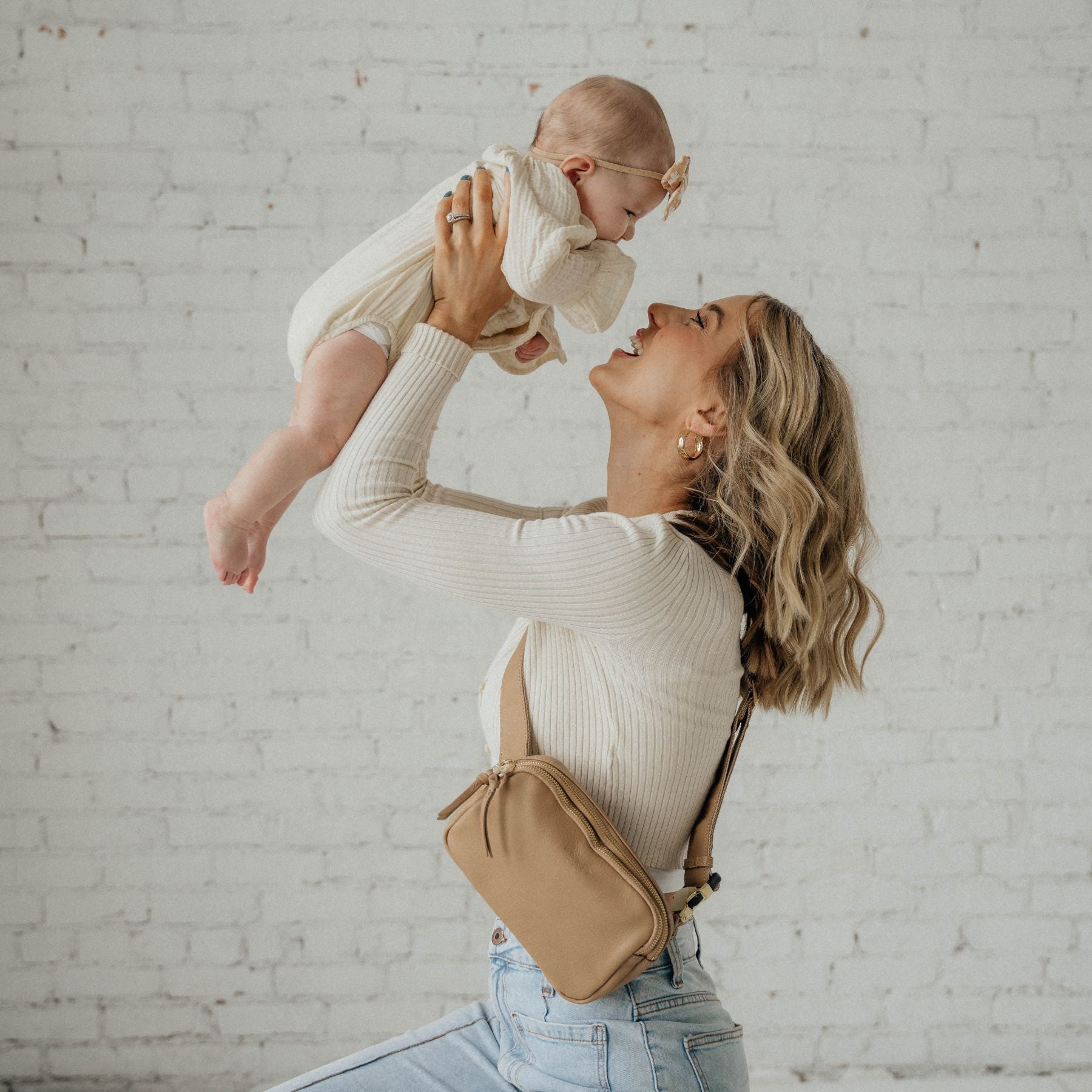 Say hello to this essential sidekick for the modern YOU: our 100% Genuine Leather Belt Bag, Bum Bag, Waist Bag, Sling Bag, Crossbody—you name it! It's perfect for the store, Disney, play dates, concerts, girls' night—you name it. Designed in the USA by a mom of 5 and handmade to perfection. Easily transform the belt bag for your lifestyle—timeless and versatile, the belt bag can be worn around the waist, across the chest, around the back, or over the shoulder. Luxury on the outside and wipeable on the inside, clean-up is a breeze with the water-resistant interior lining. These bags aren't just a phase; they're designed to transition with you in whatever stage of life you find yourself.