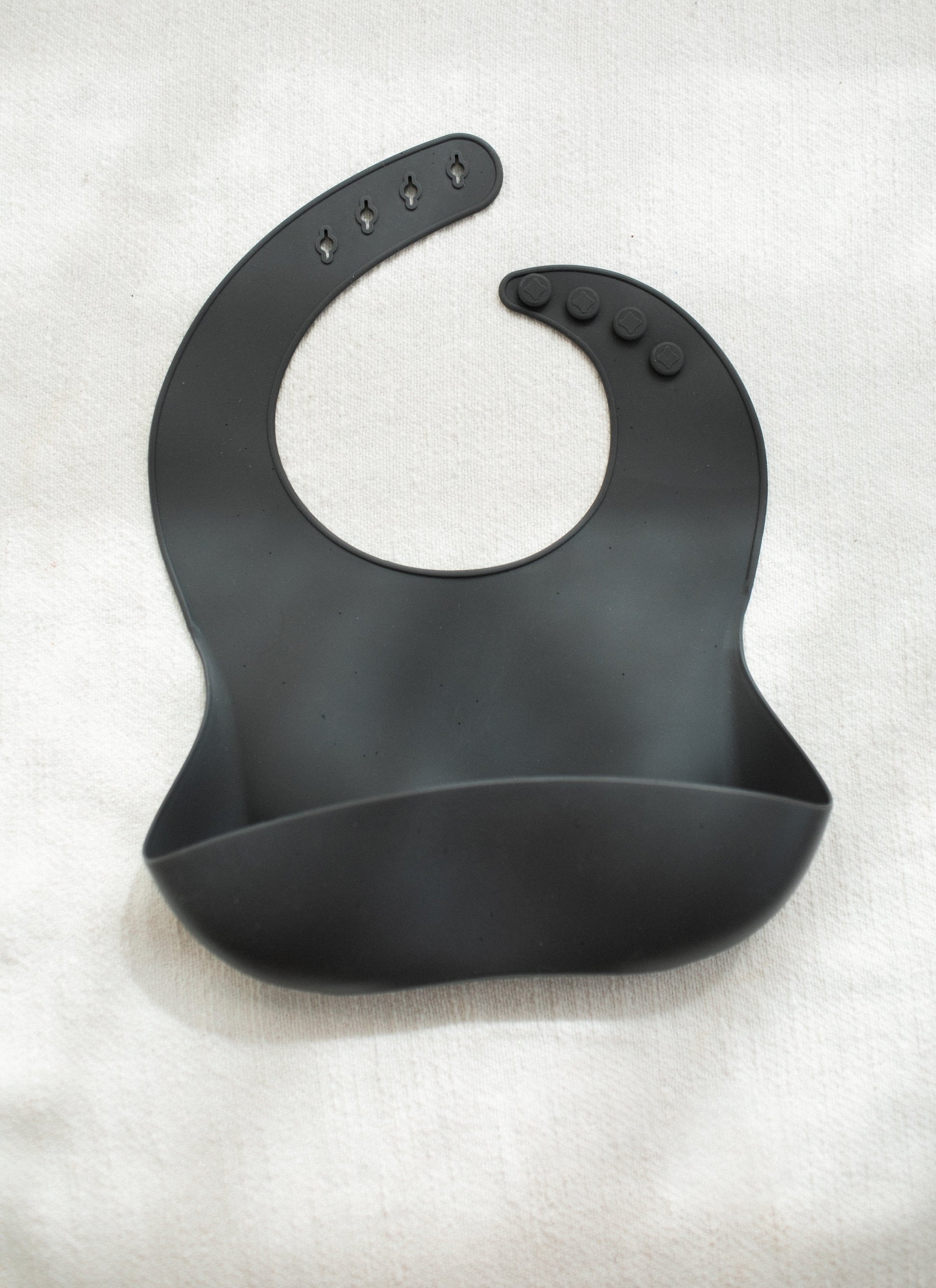 The Bohemian Mama Littles Baby Silicone Bib in black is the newest addition to the BOMA collection. This bib is SAFE 100% BPA-free silicone free from Phthalates, Lead, PVC, and other nasties. It's Eco-friendly long-lasting and recyclable very flexible and soft making it perfect for delicate necks. It comes with an adjustable neck allowing the bib to grow as baby does into toddlerhood. Its material makes it easy to clean under running water or even the dishwasher (top rack only) when out and about simply wipe it with a baby wipe The large bottom scoop at the bottom perfectly catches all those drips and crumbs and hopefully save that well-coordinated outfit you spent all morning choosing! COMPACT rolls for easy travel and storage.
