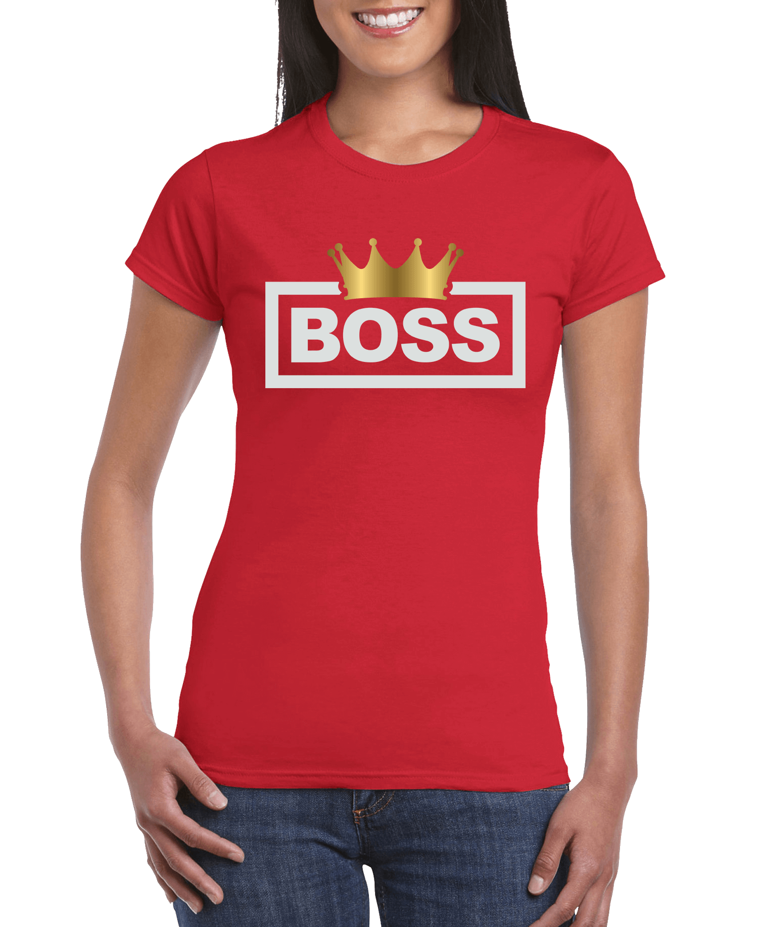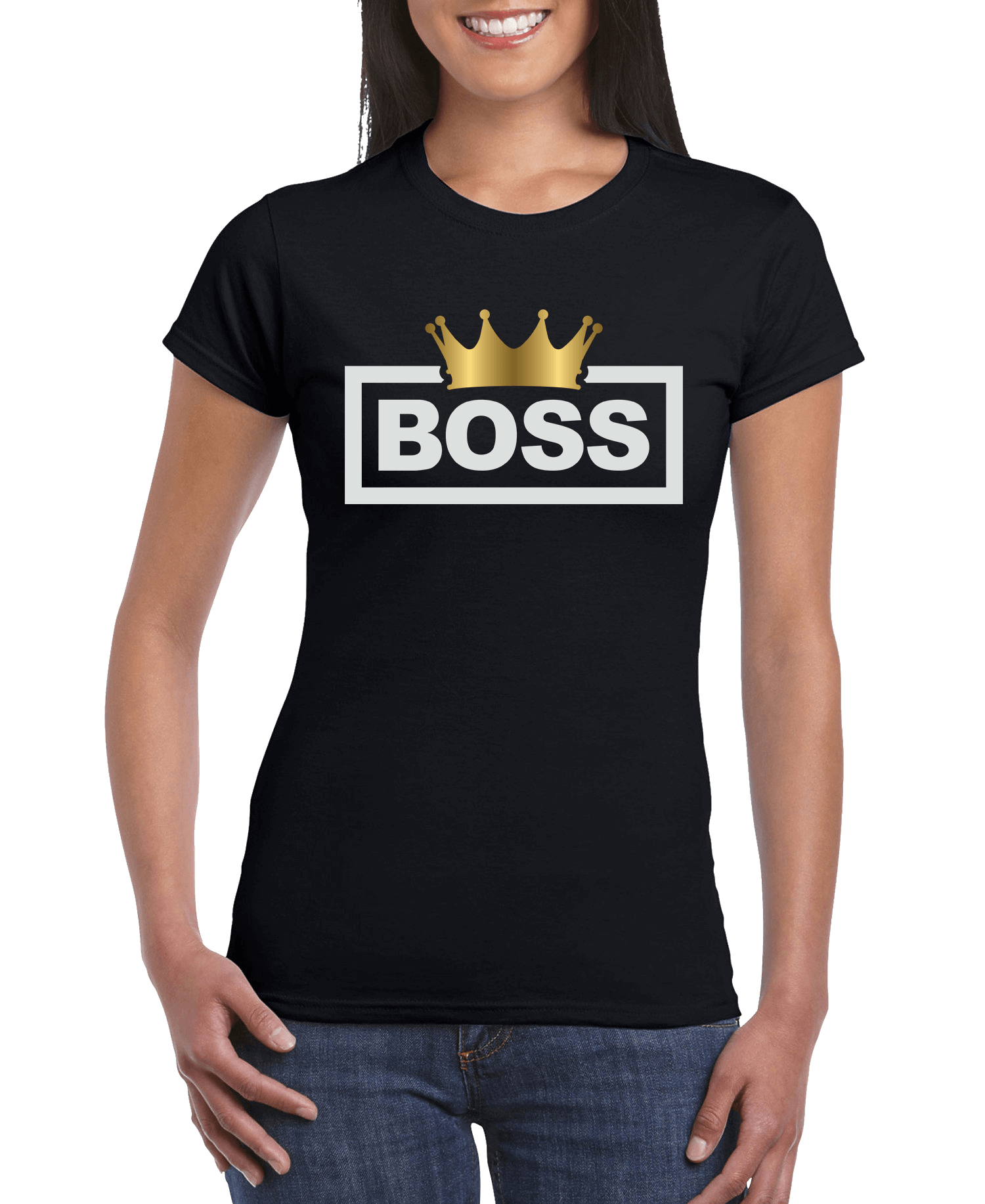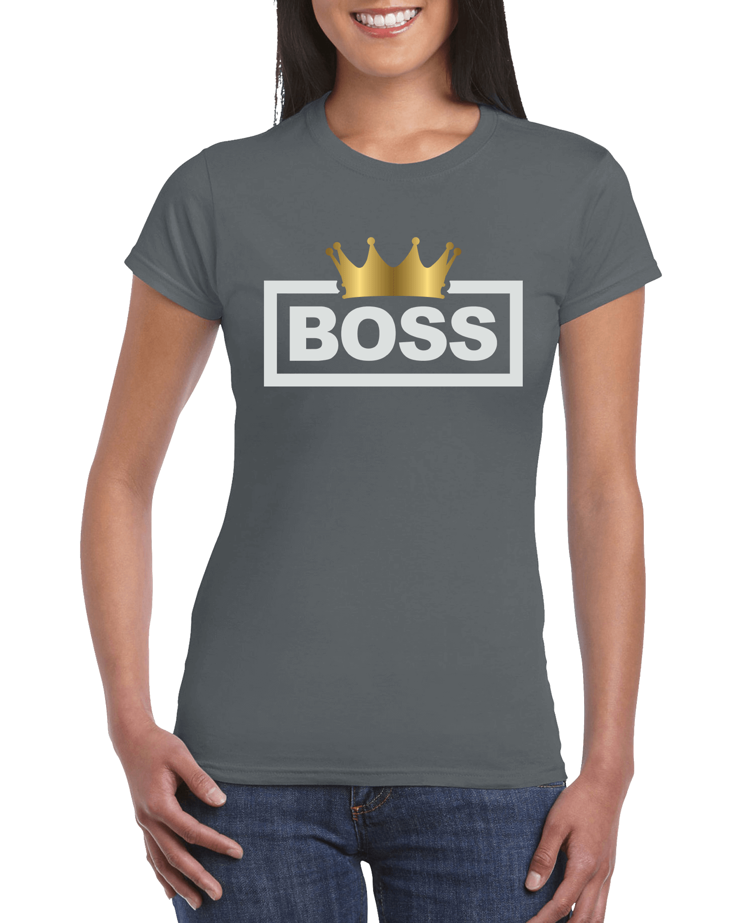 The "Boss Crown" Women's T-Shirt showcases power and confidence. With a regal crown symbol and stylish typography, it's perfect for strong women. The slim fit offers comfort and versatility. Embrace your inner boss with the "Boss Crown" tee.
