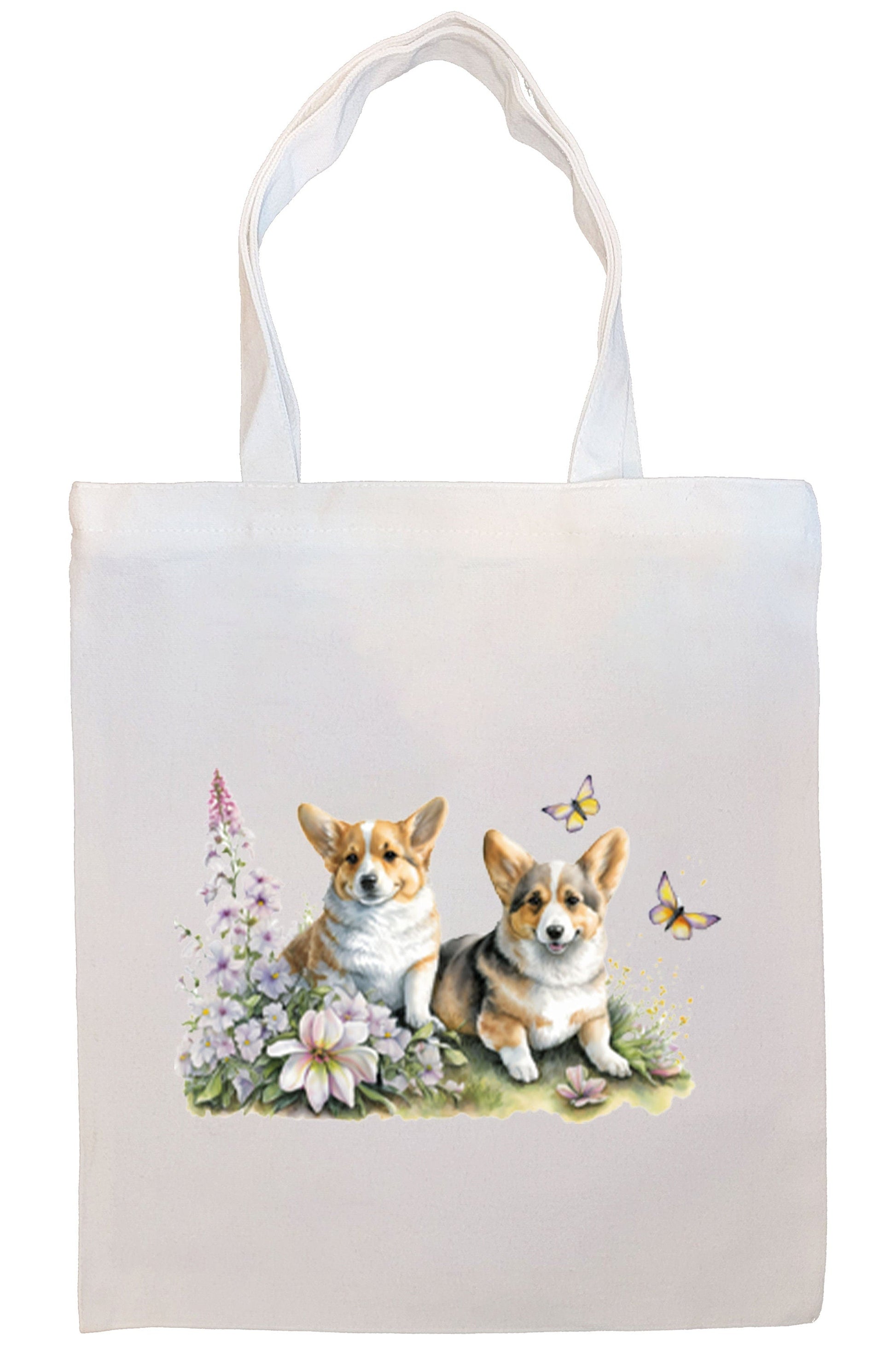 Canvas Tote Bag, Zippered With Handles & Inner Pocket, "Corgi"
