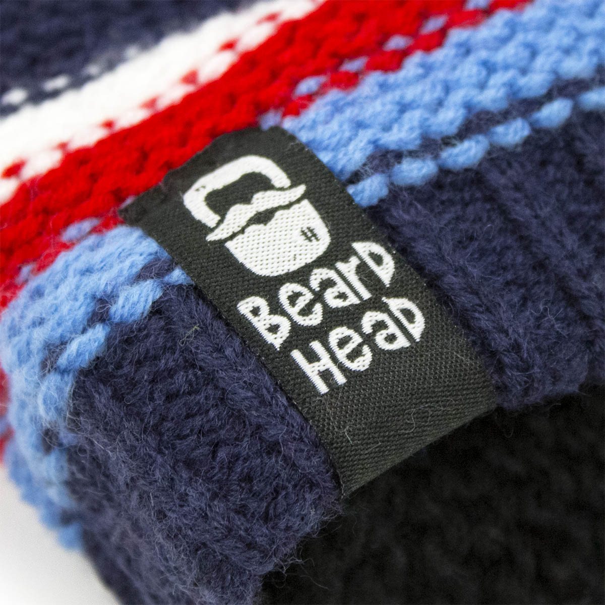 - Red/blue/white beanie w/pom and Stubble beard face mask