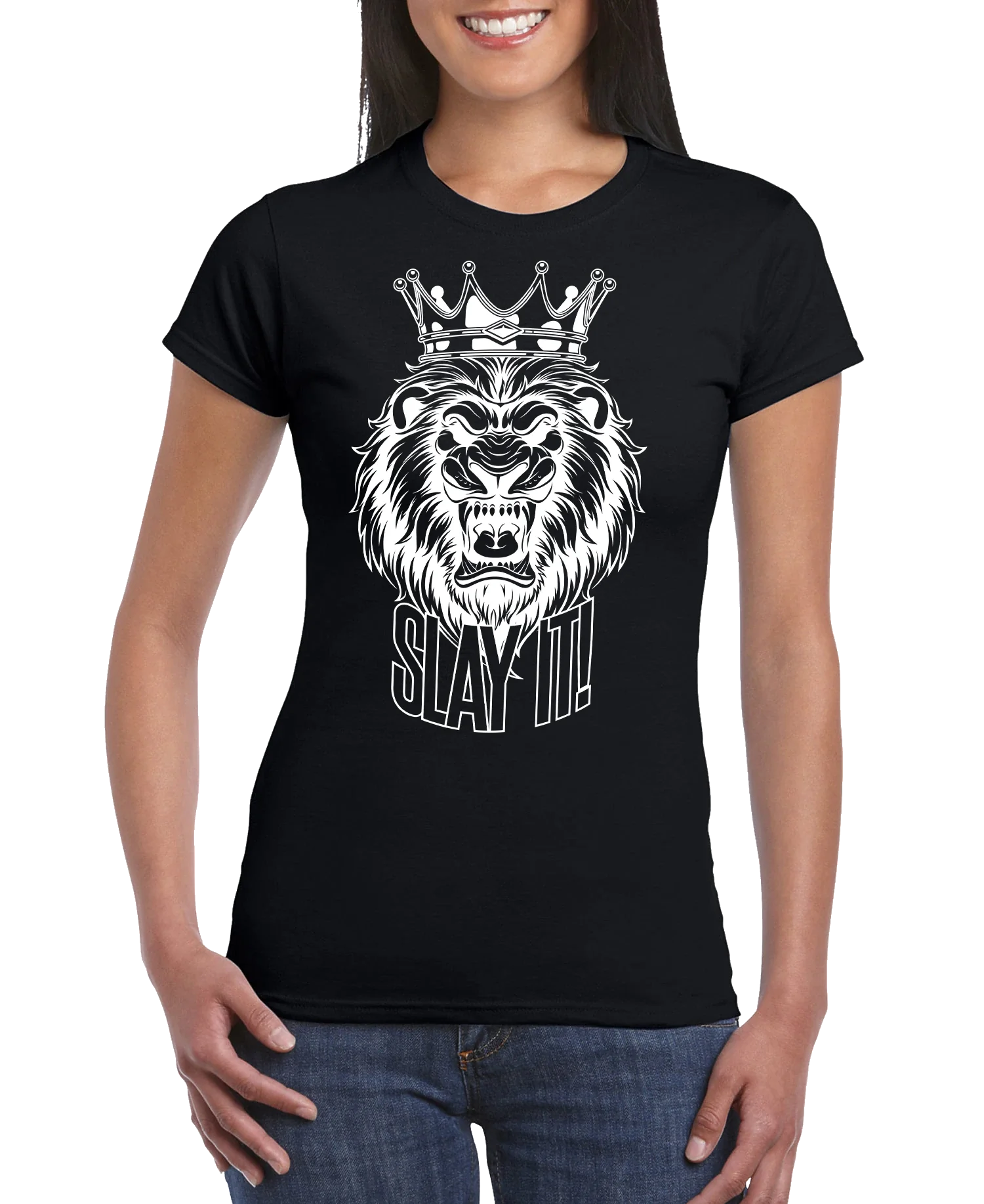 Introducing the "Slay It" Women's Slim Fit T-Shirt. It's bold, empowering, and versatile, with a modern design and comfortable slim fit. Perfect for unleashing your inner power and conquering life.