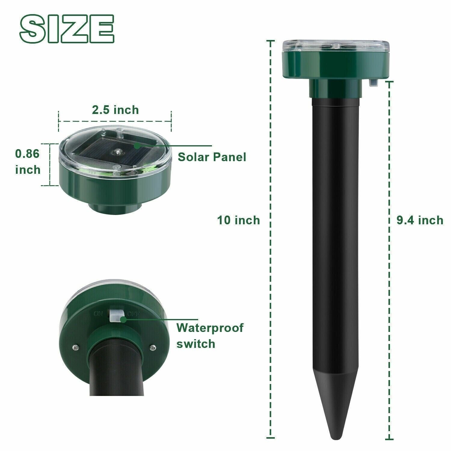 【SOLAR-POWERED - Economic & Safe】It operated by a solar rechargeable battery, just insert the mole stakes in your garden and turn it on, then it will protect your garden from moles, no need replace battery.