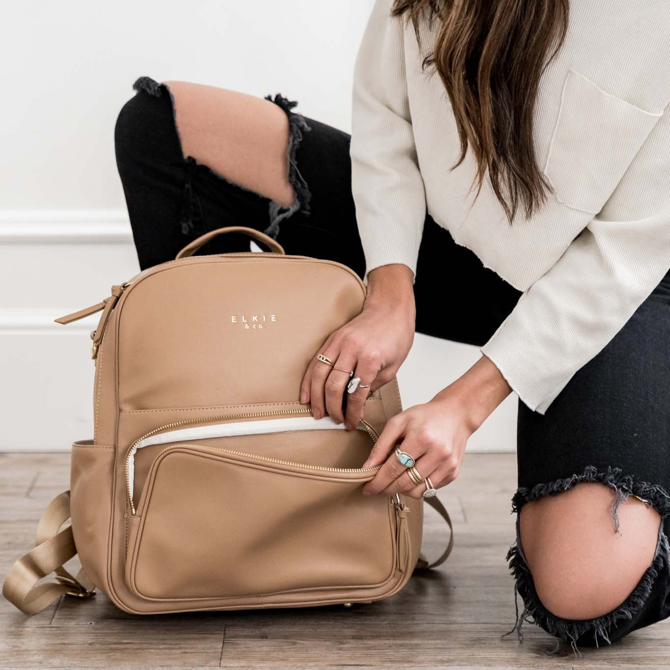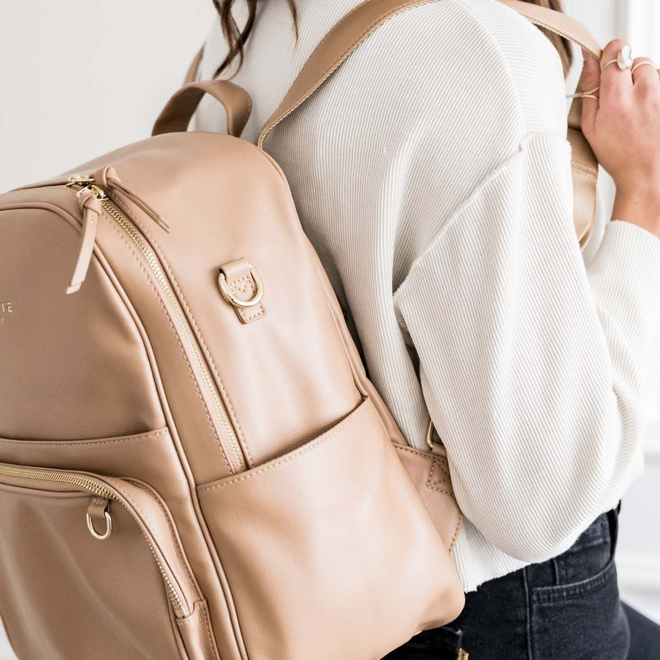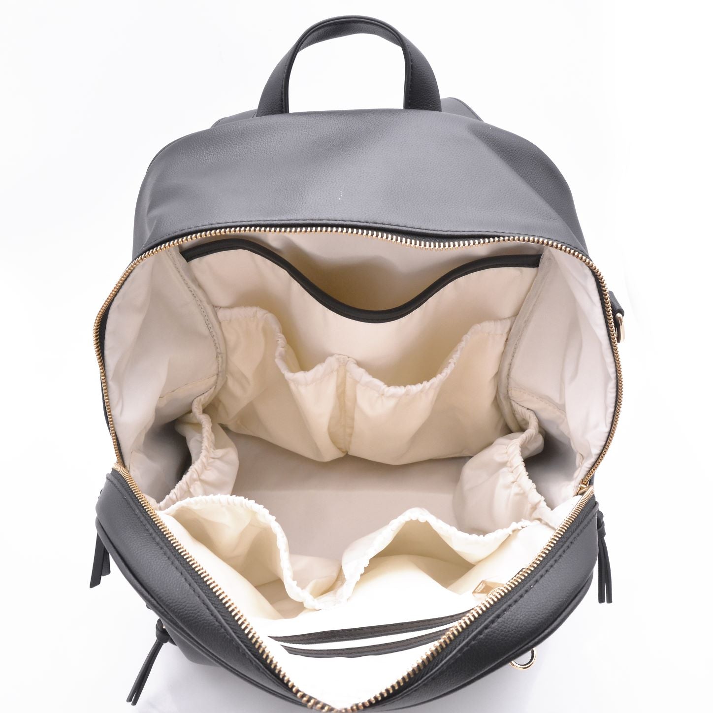 Say hello to the ultimate backpack for the modern YOU: the Aspen Vegan Leather Backpack. Let it go with you from the office to the babysitter’s house. Designed in the USA by a mom of 5 and handmade to perfection. Easily transform the Aspen for your lifestyle--diaper bag backpack, travel bag, or laptop bag. Timeless and versatile, the Aspen can be worn as a backpack or shoulder bag. Luxury on the outside and wipeable on the inside, clean-up is a breeze with the water-resistant interior lining. These bags aren't just a phase; they're designed to transition with you in whatever stage of life you find yourself.
