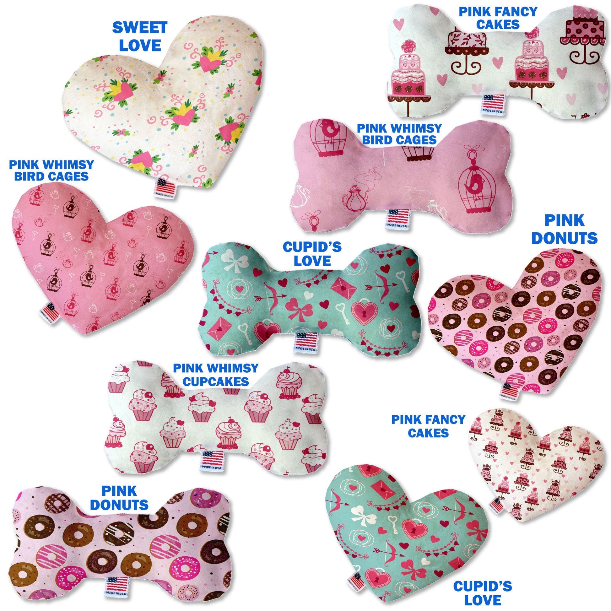 Valentine's Day Pet & Dog Plush Heart or Bone Toy, "Sweet Love Group" (Available in different sizes, and 6 different pattern options!)