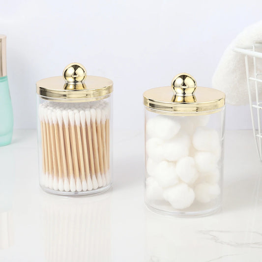 1/2/3pcs Cotton Swab Ball Pad Holder 10 Oz Qtip Apothecary Jar Clear Storage Box Makeup Organizer, Bathroom Containers Dispenser